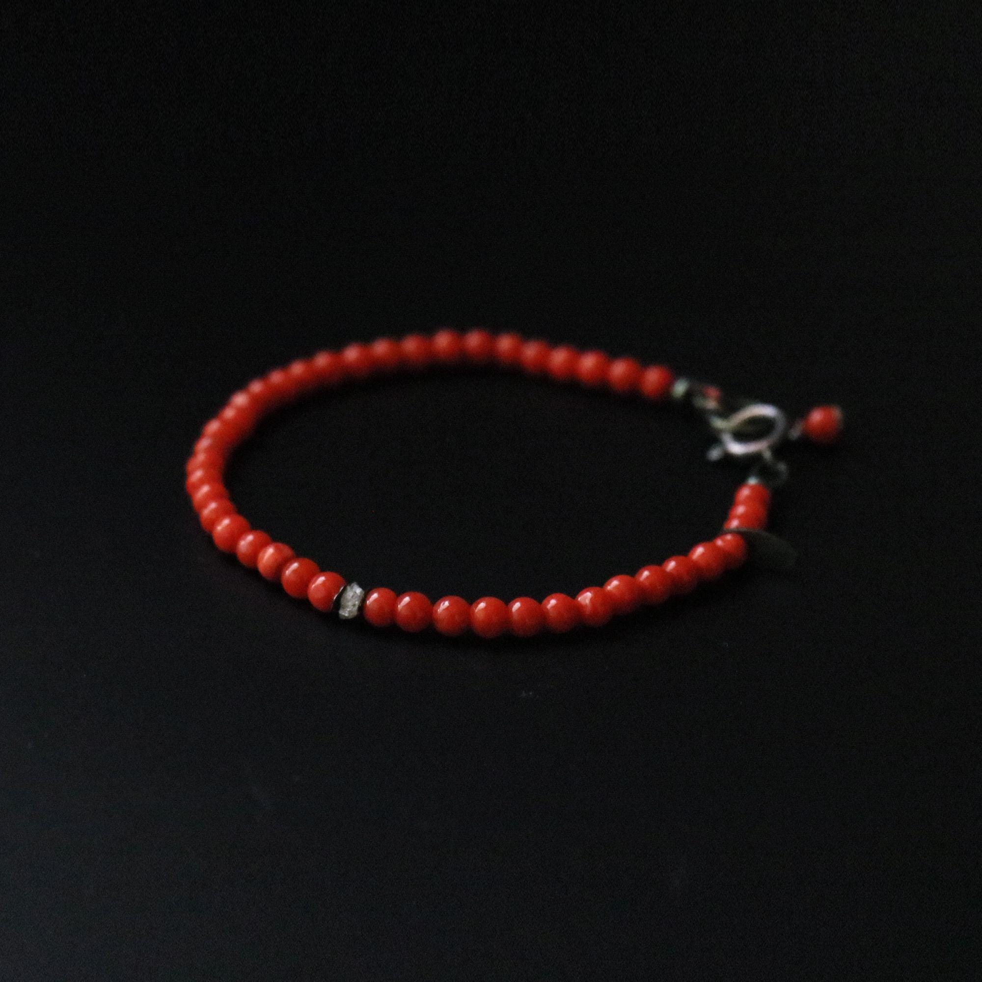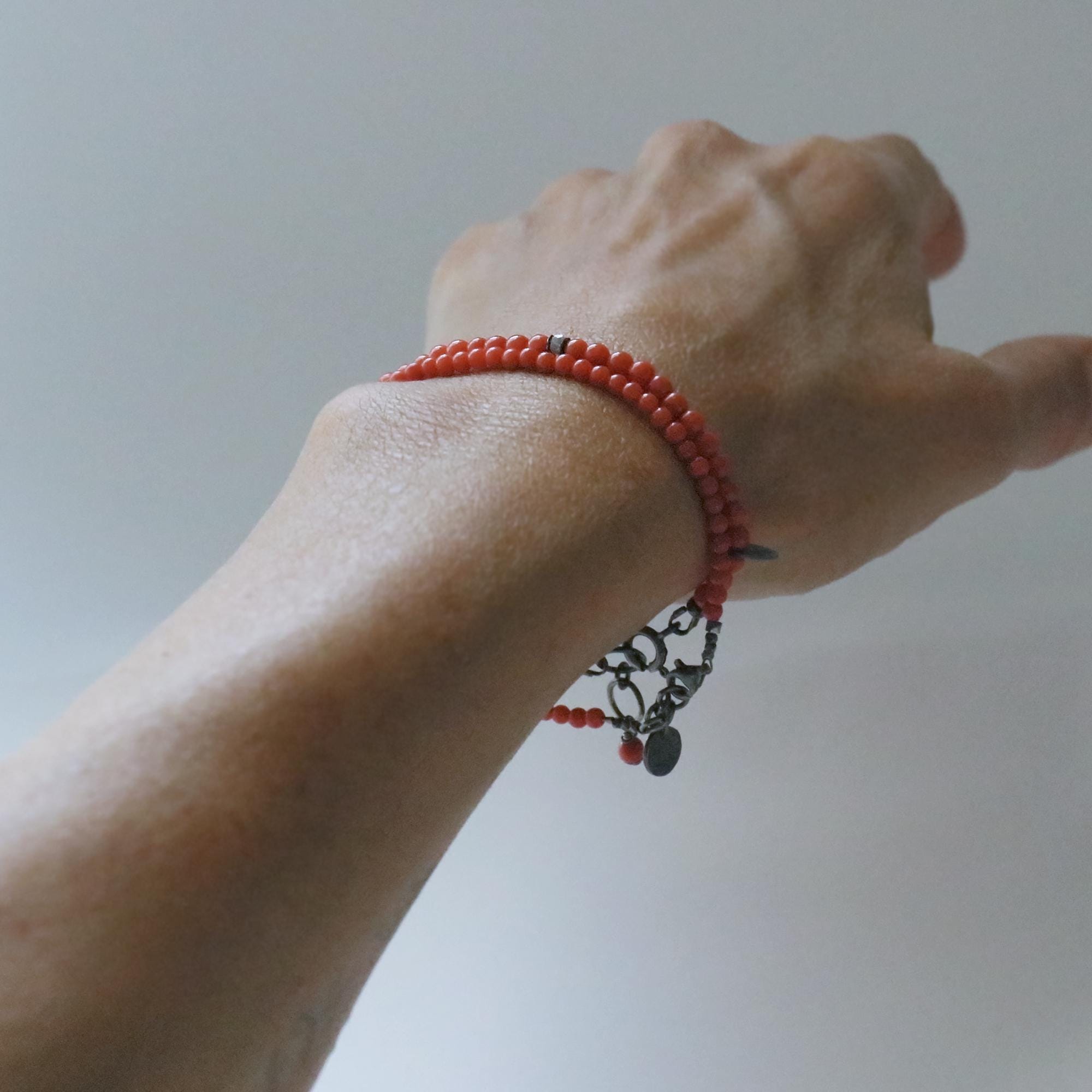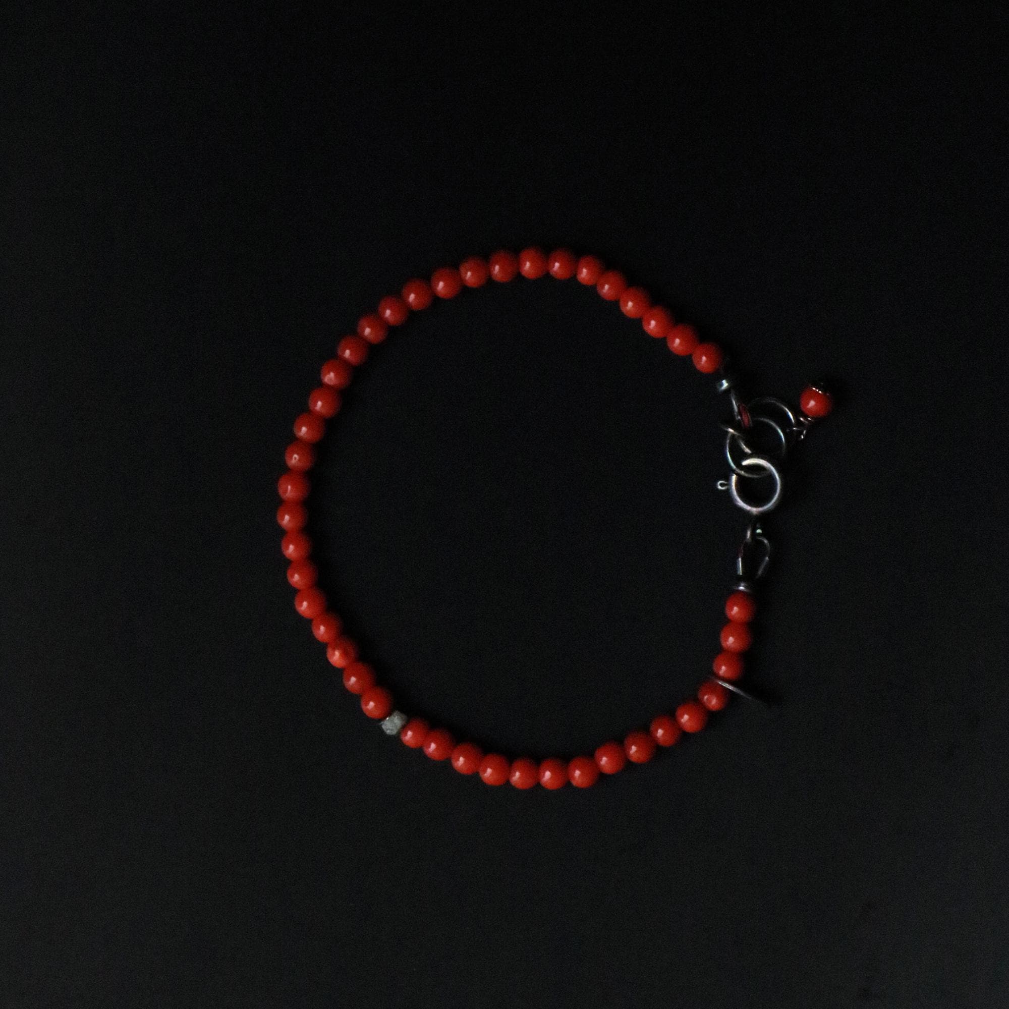 Hand crafted bracelet made from natural Adriatic Corals (size 3mm), raw white diamonds (3mm), oxidized 925 silver.