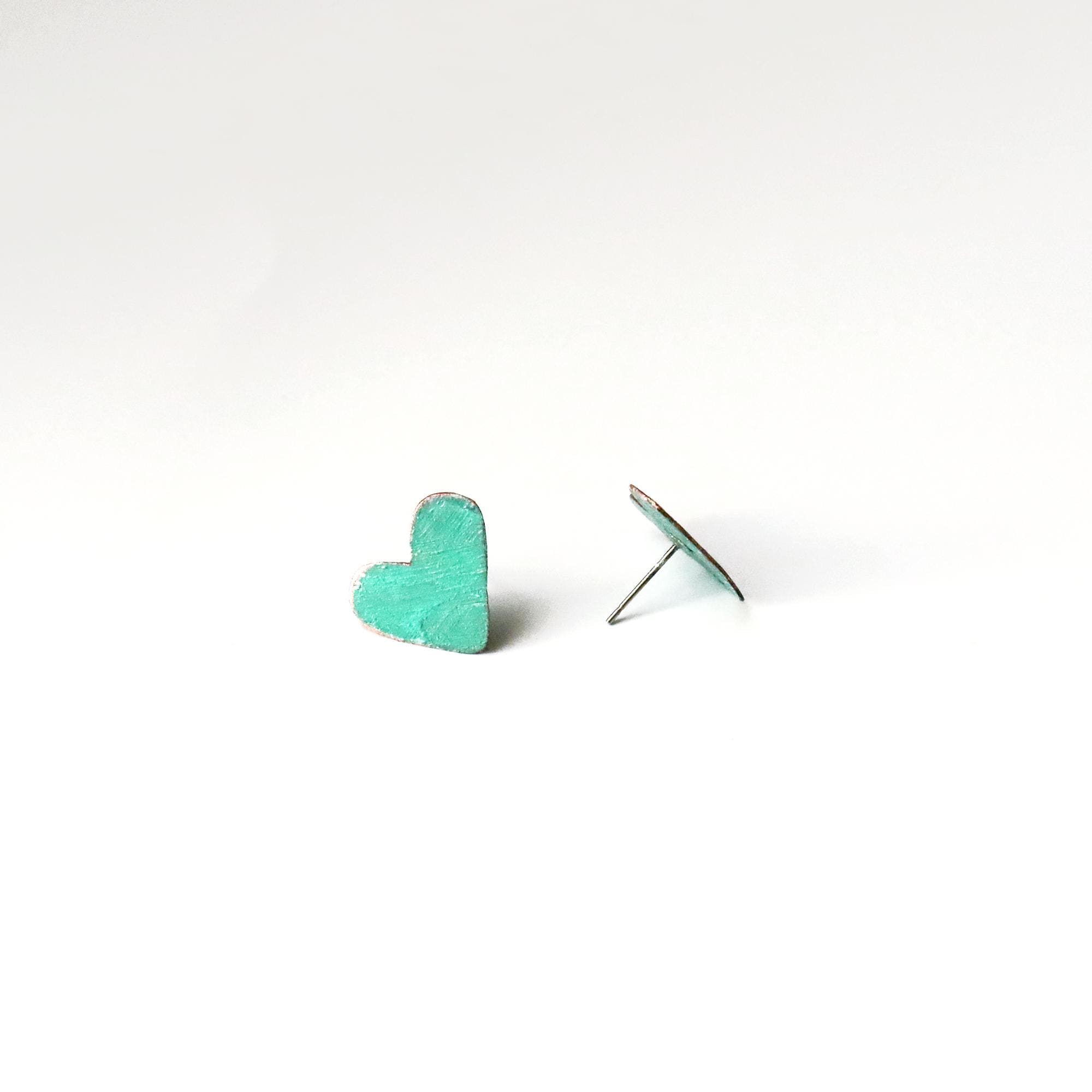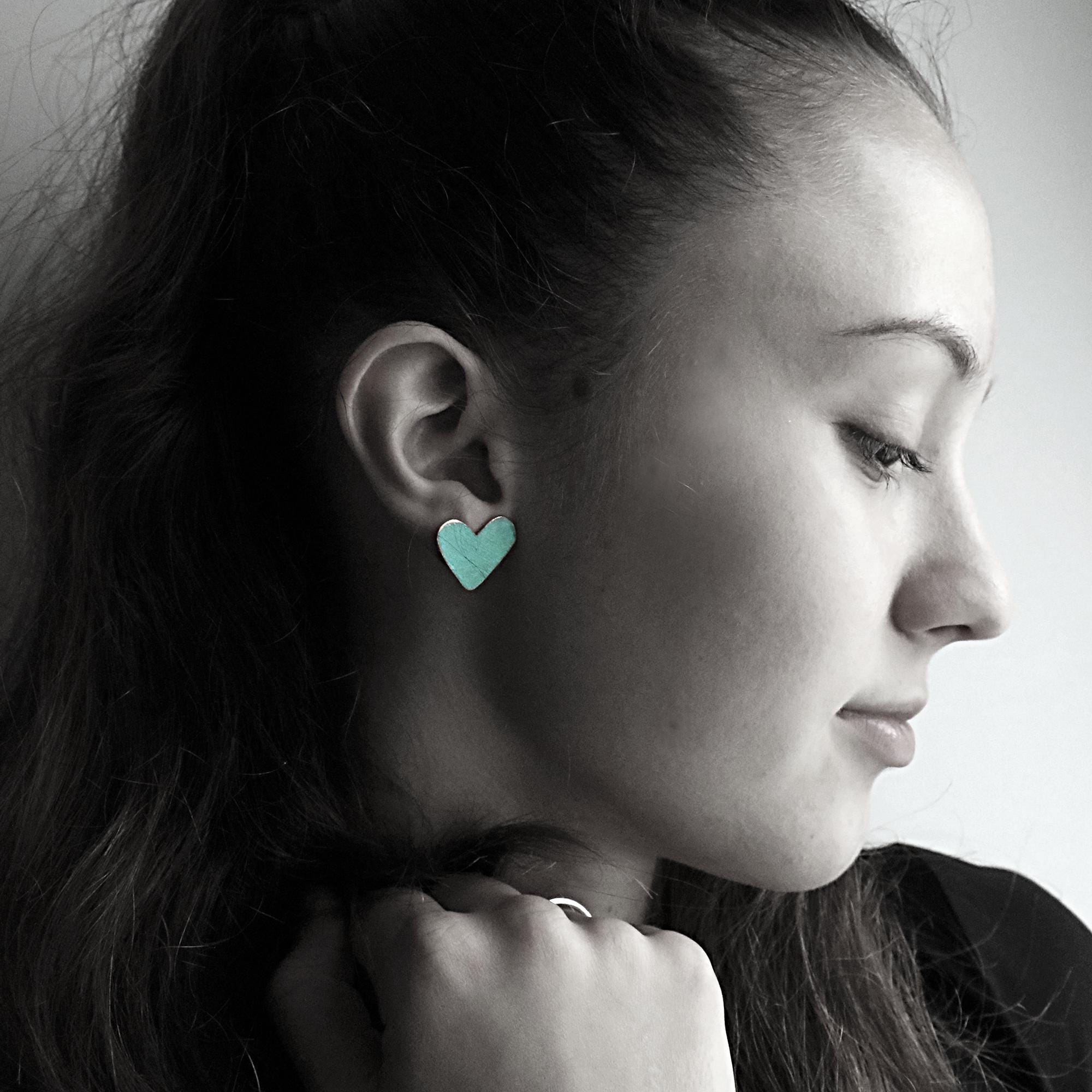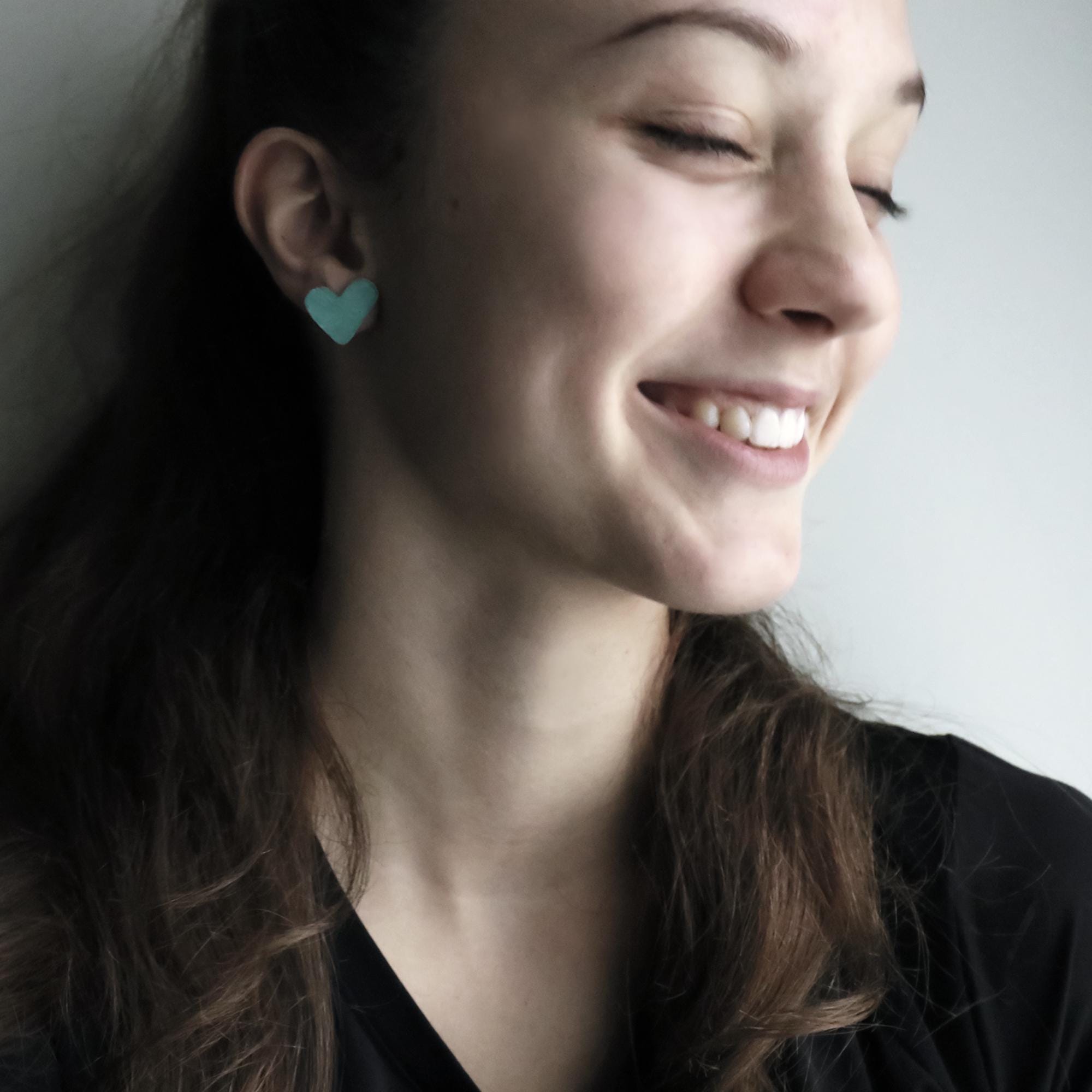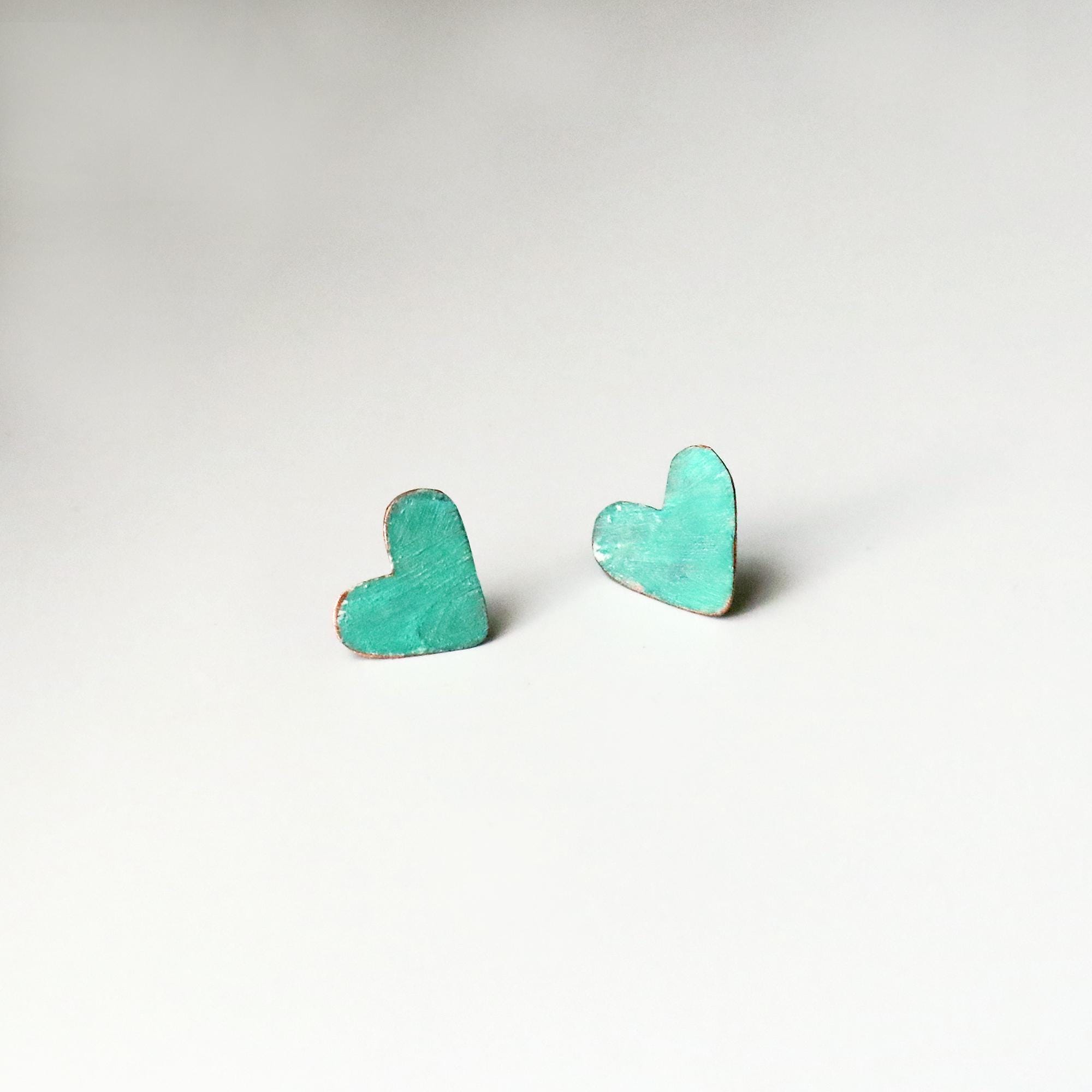 Hand-Painted Heart Earrings - Heart by Heart Collection - Handmade Colourful Earrings - Turquoise Hearts Earrings